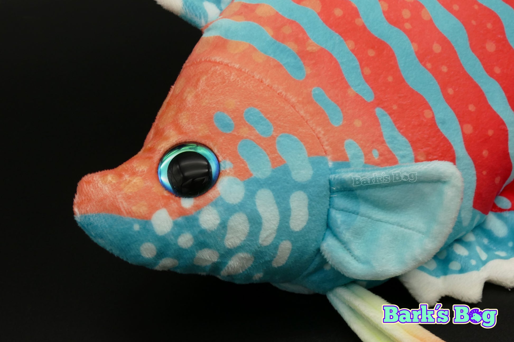 Plushies based on Dwarf Gouramis (Trichogaster lalius), a popular freshwater fish in the aquarium hobby. These big fish are made from soft minky!
