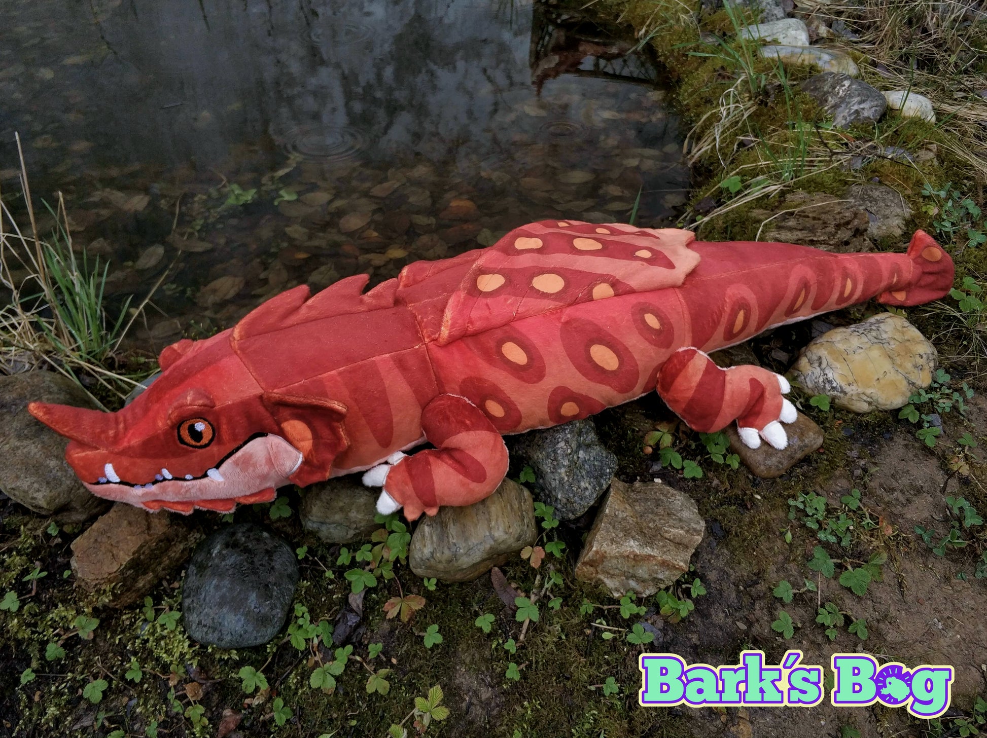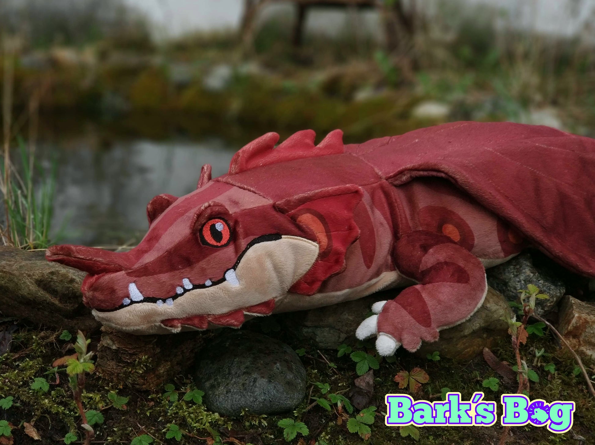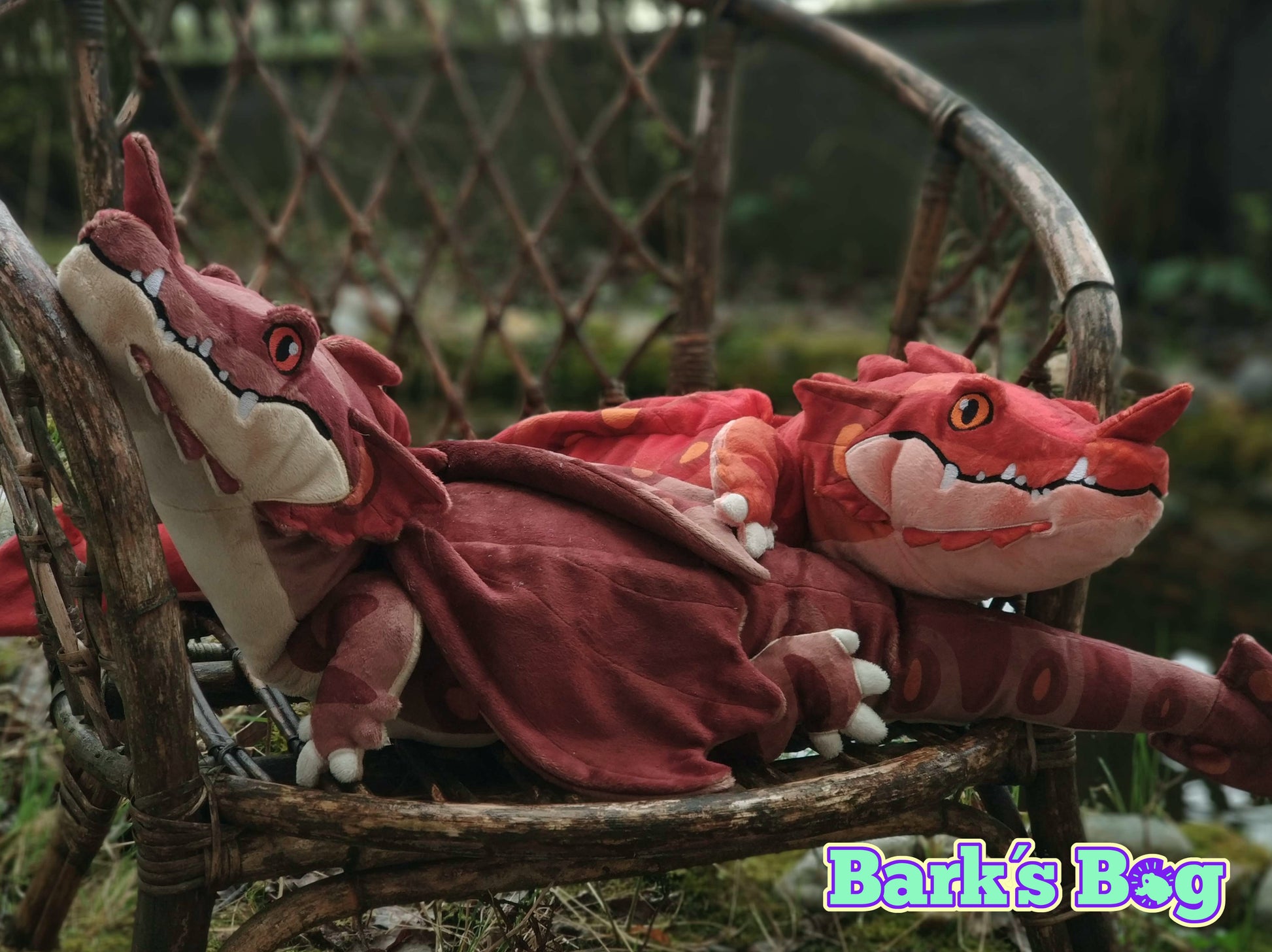 Plushies based on Fire Draces from my friends Dracones mundi project. They are made from soft minky , have jointed legs and weighted bellies!
