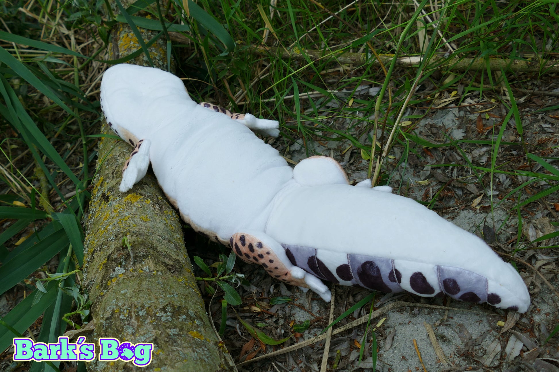 these plushies are made from soft minky fabric and quite hefty with their weighted bellies and big tails. they also offer some poseability with their jointed arms and legs so you can make them "sploot" like a real gecko!